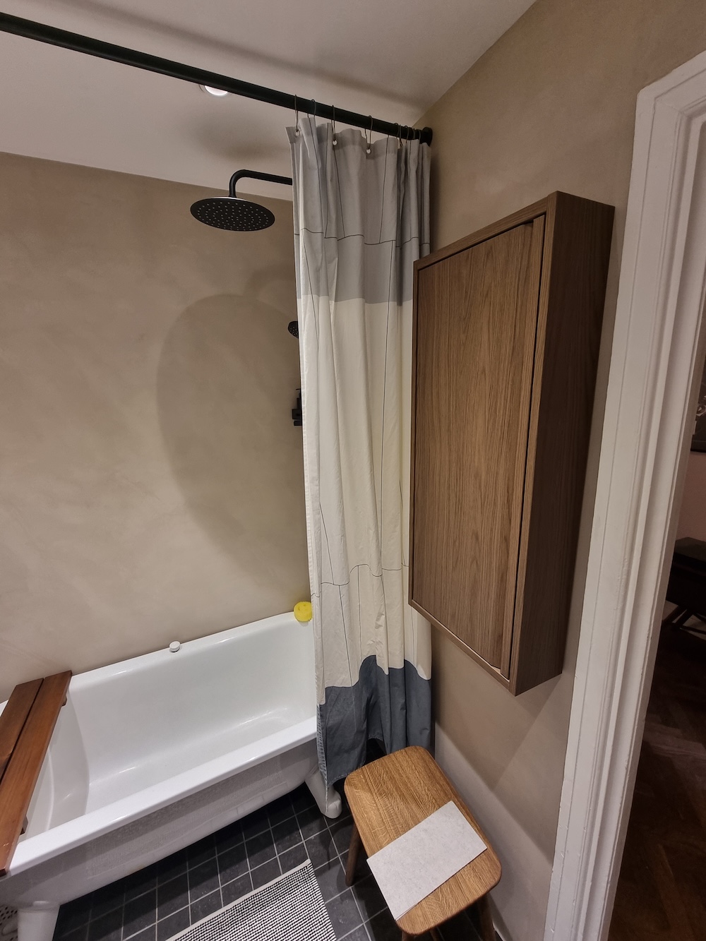 I det här projektet i Hornstull fick vi uppdraget att förnya ett befintligt badrum där kunden ville behålla det befintliga klinkergolvet men ge väggarna ett nytt och modernt uttryck. Vi applicerade microcement direkt ovanpå kakelväggarna, vilket skapade en sömlös och stilren yta utan att behöva riva eller byta ut något.