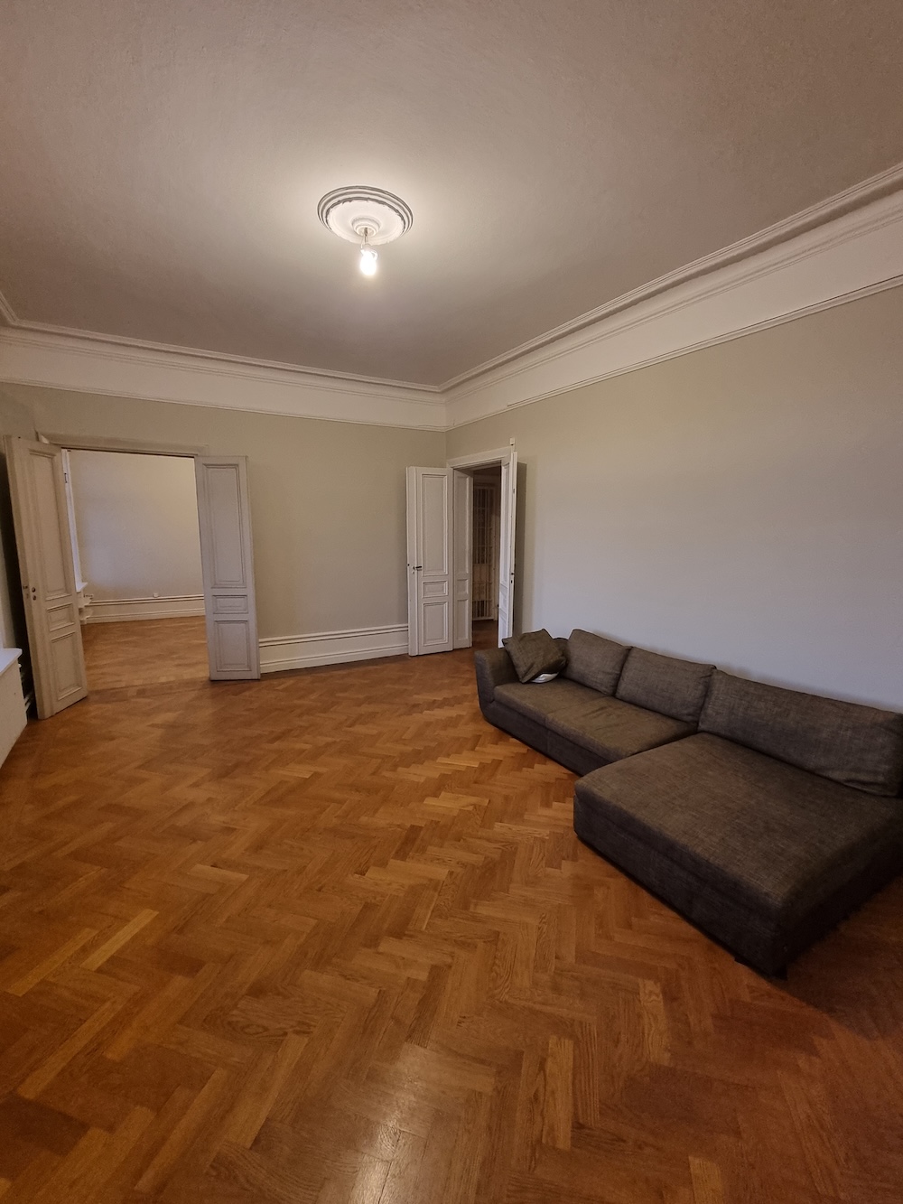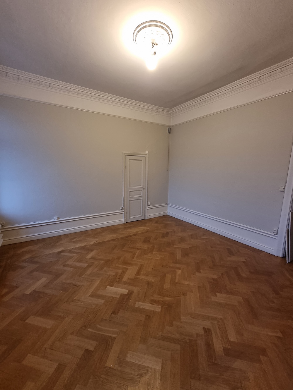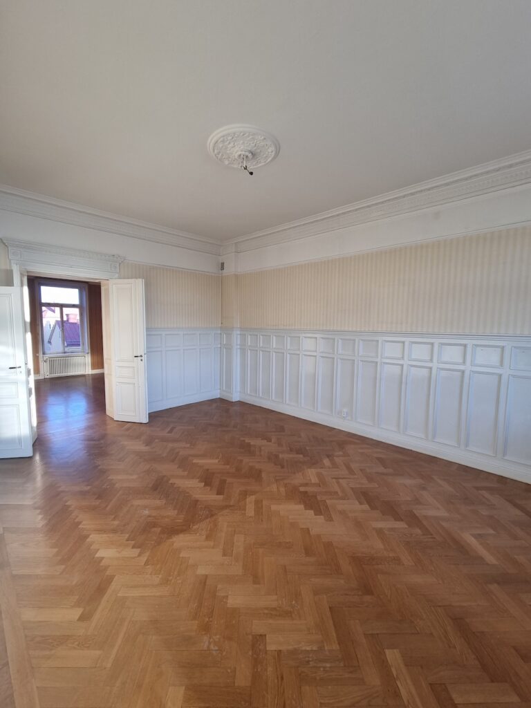 Vi målade alla väggar i harmoniska kulörer som framhävde bostadens ljus och karaktär, och genomförde samtidigt en köksrenovering för att skapa en sammanhängande helhetskänsla. Som en del av arbetet öppnade vi upp en vägg för att skapa en ny dörröppning – en förändring som gav bättre flöde och rymd genom den stora lägenheten.
