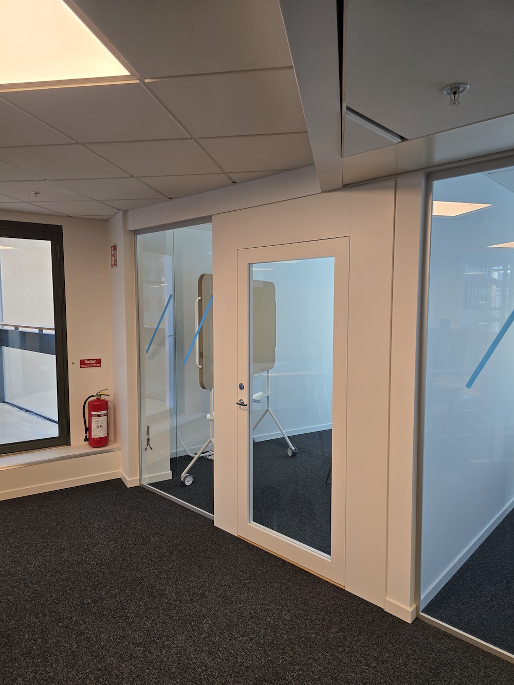 Utöver byggnationen uppdaterades även sprinkler- och brandanläggningen för att möta gällande krav i de nya rumsindelningarna. Arbetet omfattade byggnation, glasinstallation, målning och teknisk anpassning – allt utfört med fokus på funktion, estetik och säkerhet.
