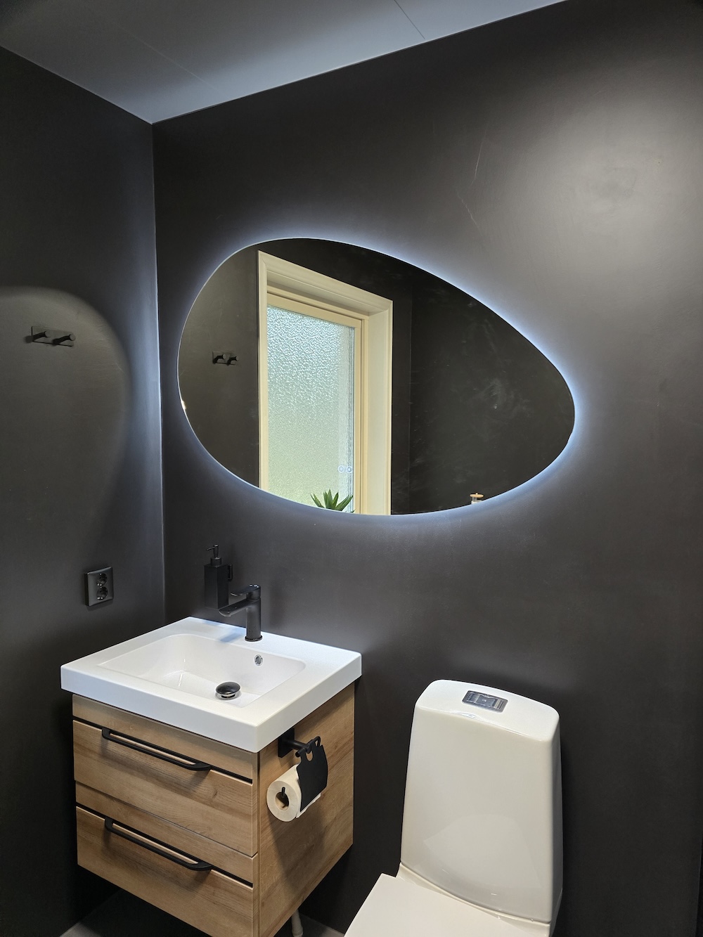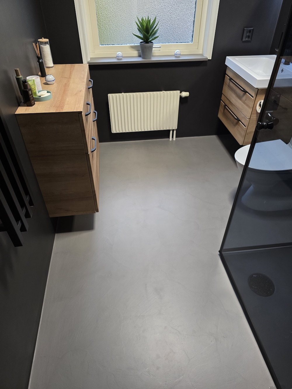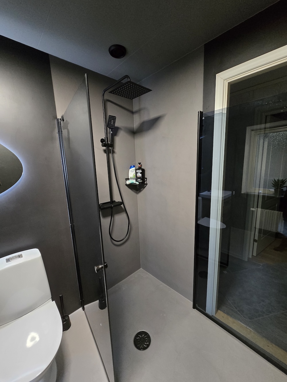 I det här projektet ville kunden fräscha upp sitt badrum utan att riva ut allt. Istället för att bila eller byta ytskikt, applicerade vi microcement direkt ovanpå den befintliga plastmattan, vilket gav badrummet en helt ny känsla och ett modernt uttryck.