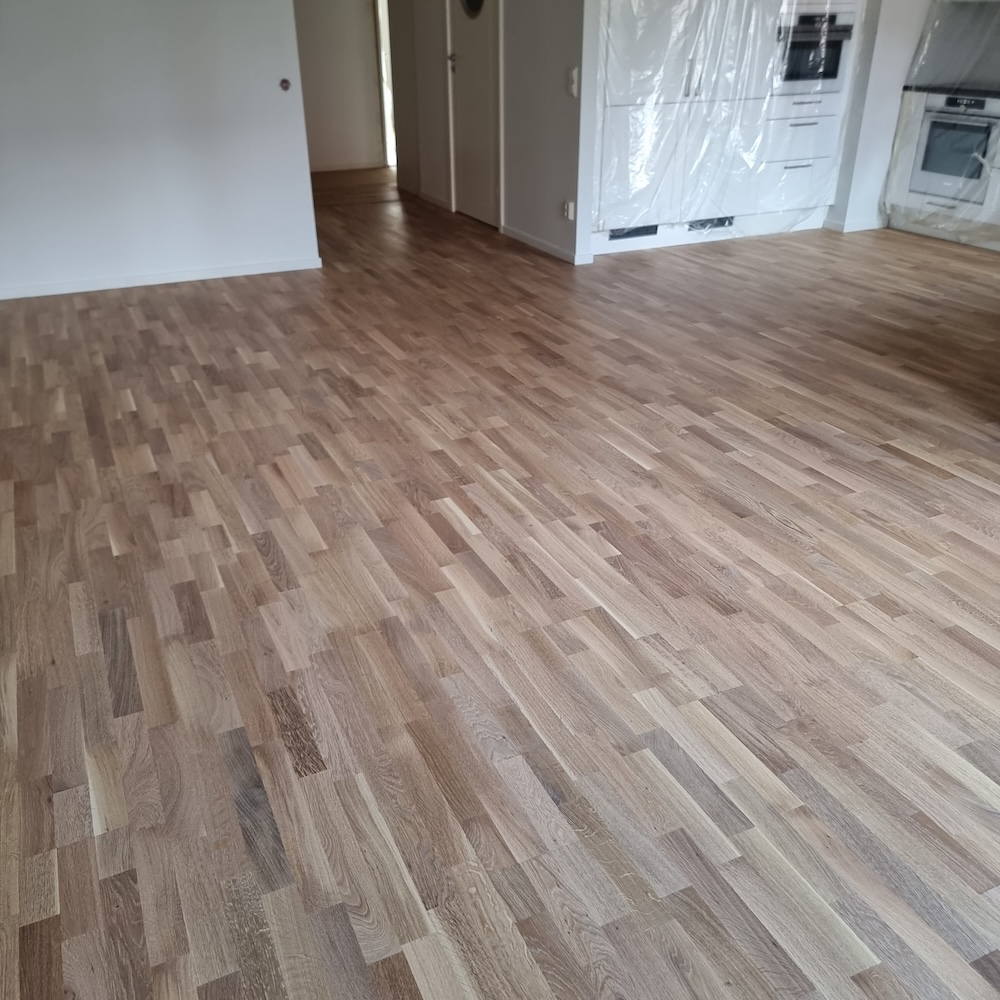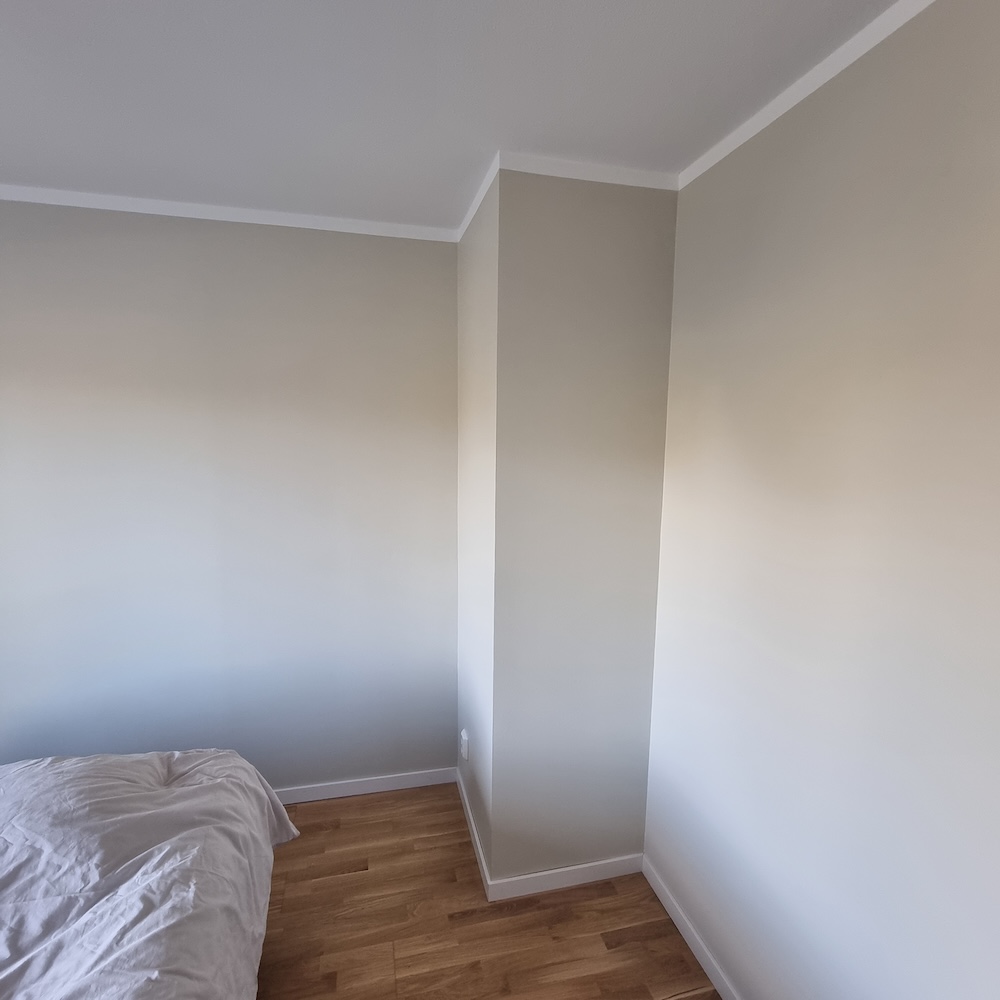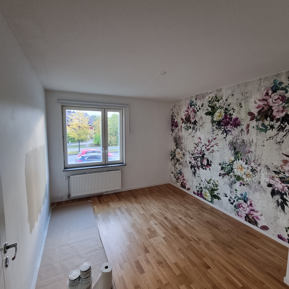 I det här projektet i Tyresö fick vi uppdraget att ge en hel lägenhet ett lyft genom både målning och golvslipning. Vi började med att riva de gamla tapeterna och förberedde ytorna noggrant innan målning. Väggarna målades i ljusa, moderna kulörer som gav bostaden en fräsch, enhetlig och tidlös känsla.
