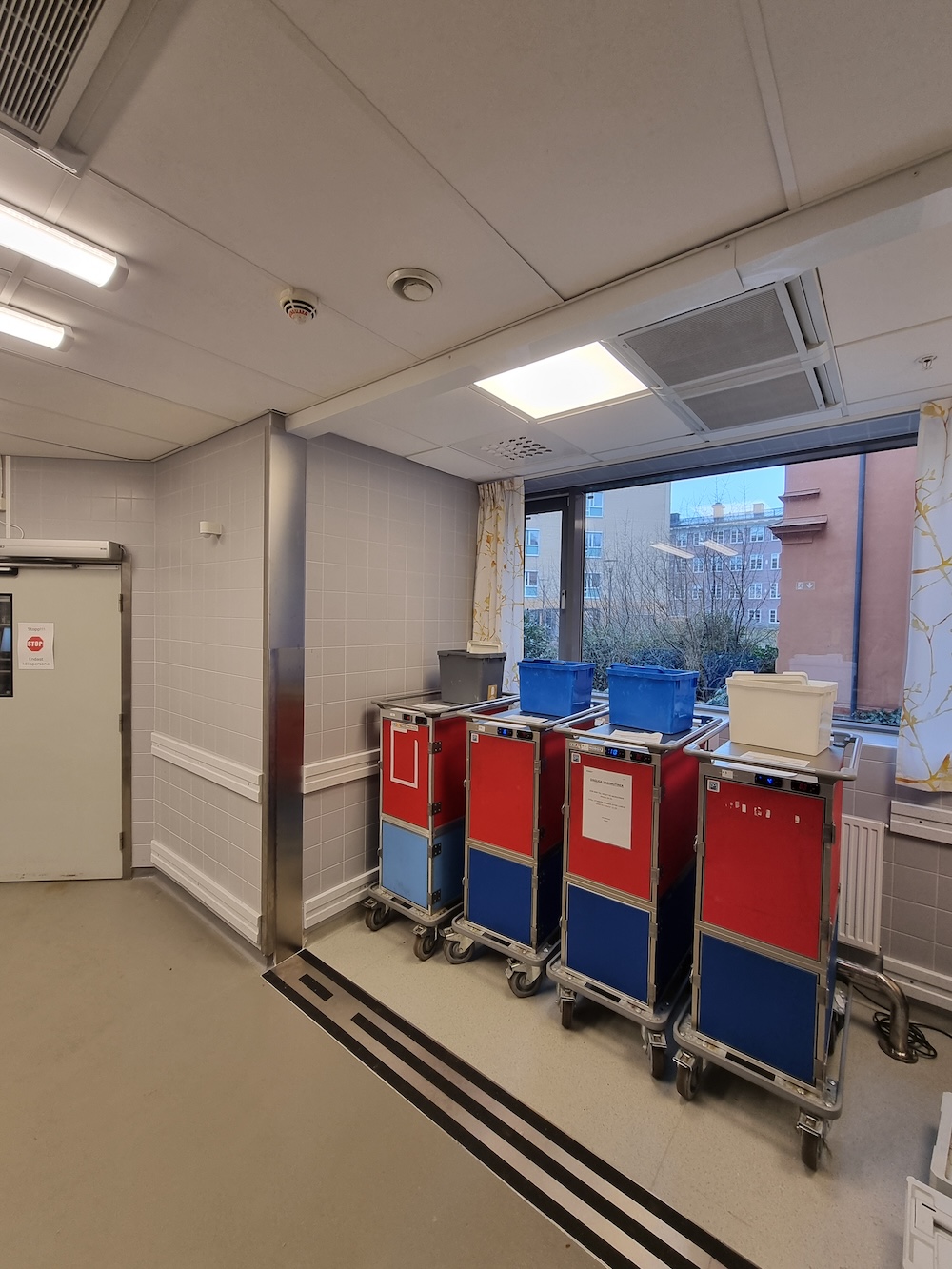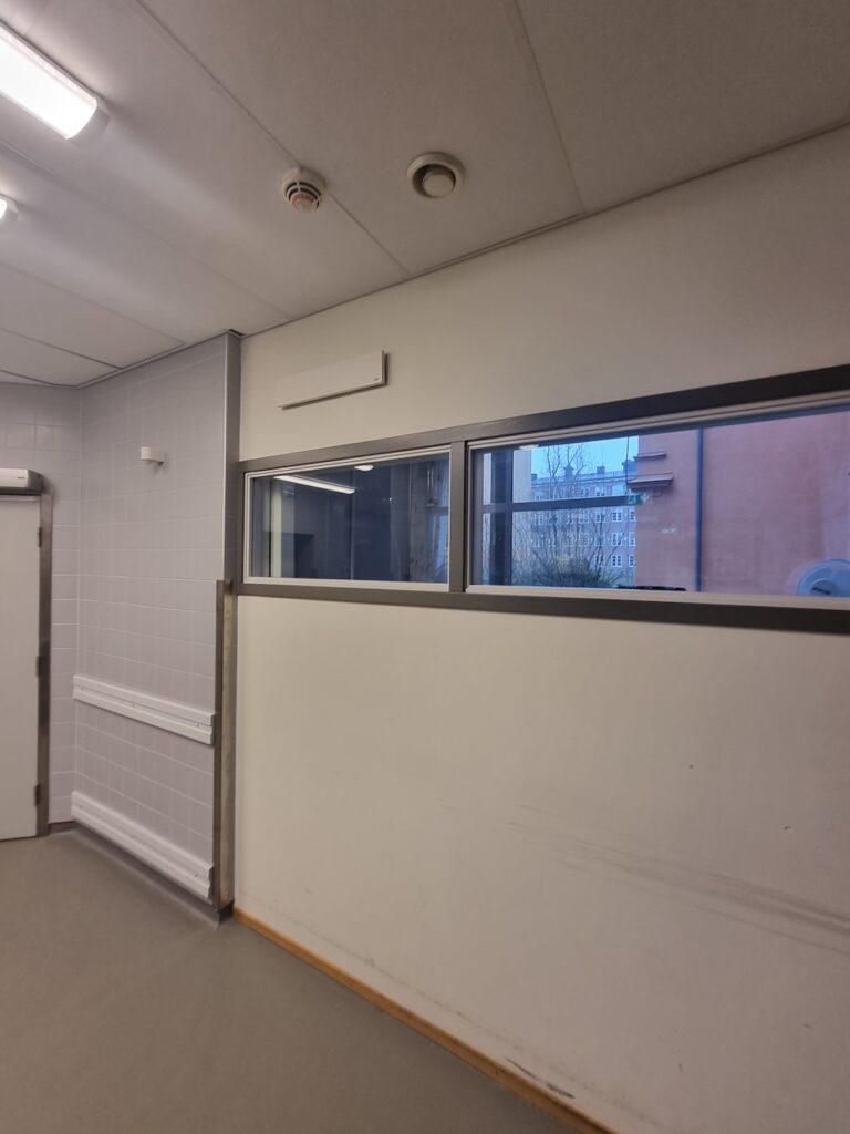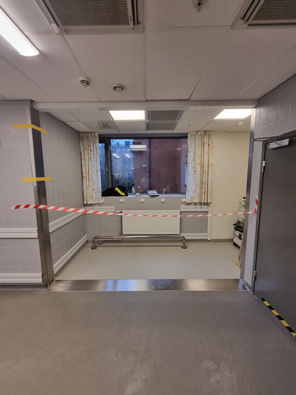 I det här projektet fick vi uppdraget att riva en vägg på ett sjukhus på Kungsholmen för att skapa mer plats åt sjukhusets restaurang.